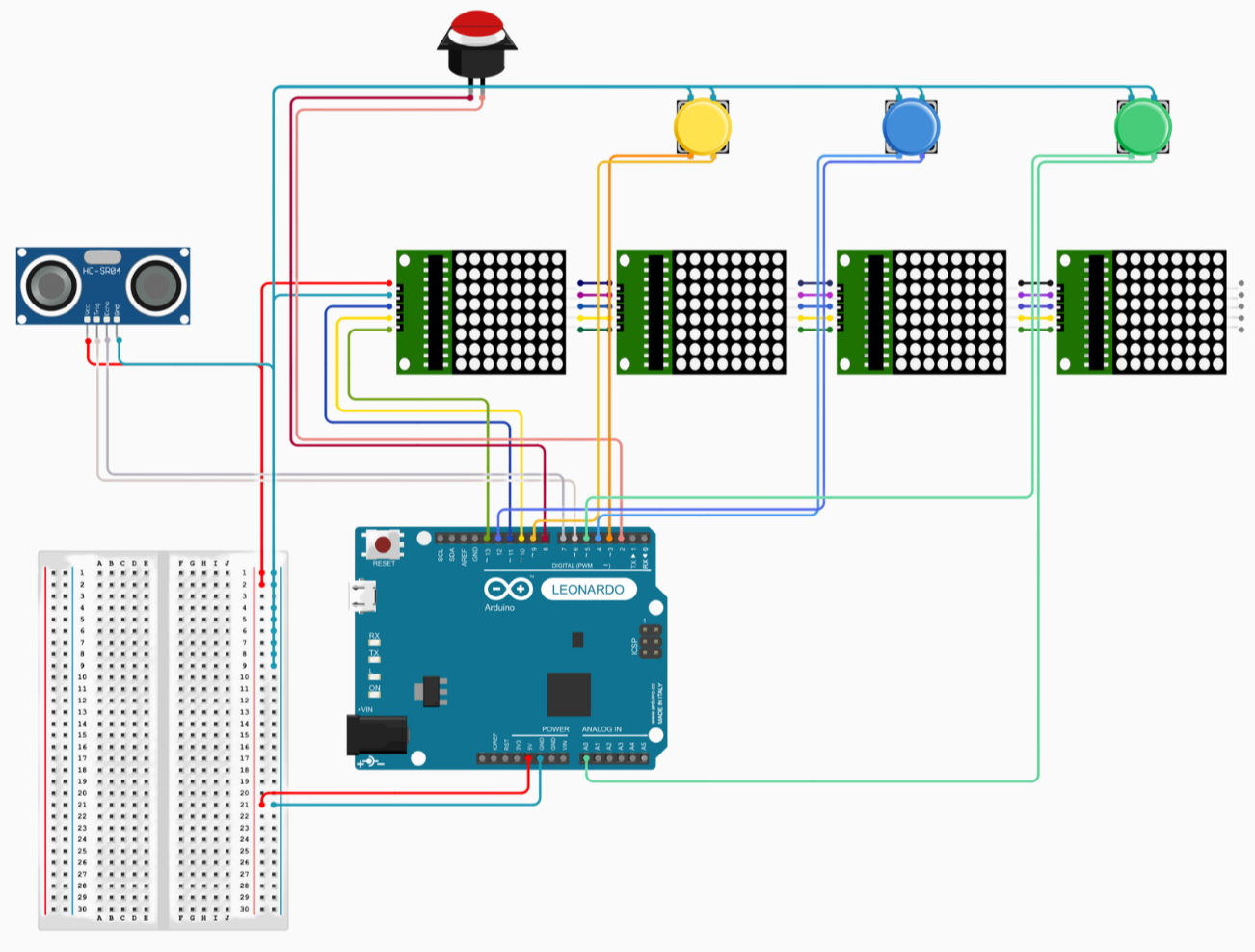 At the core of the system are Arduino-powered components that bring interactivity to the installation. An ultrasonic sensor activates the machine when a participant approaches, ensuring immediate engagement without requiring prior instruction. Large illuminated buttons provide clear, tactile input for users, while an LED display offers straightforward guidance through each step of the process.