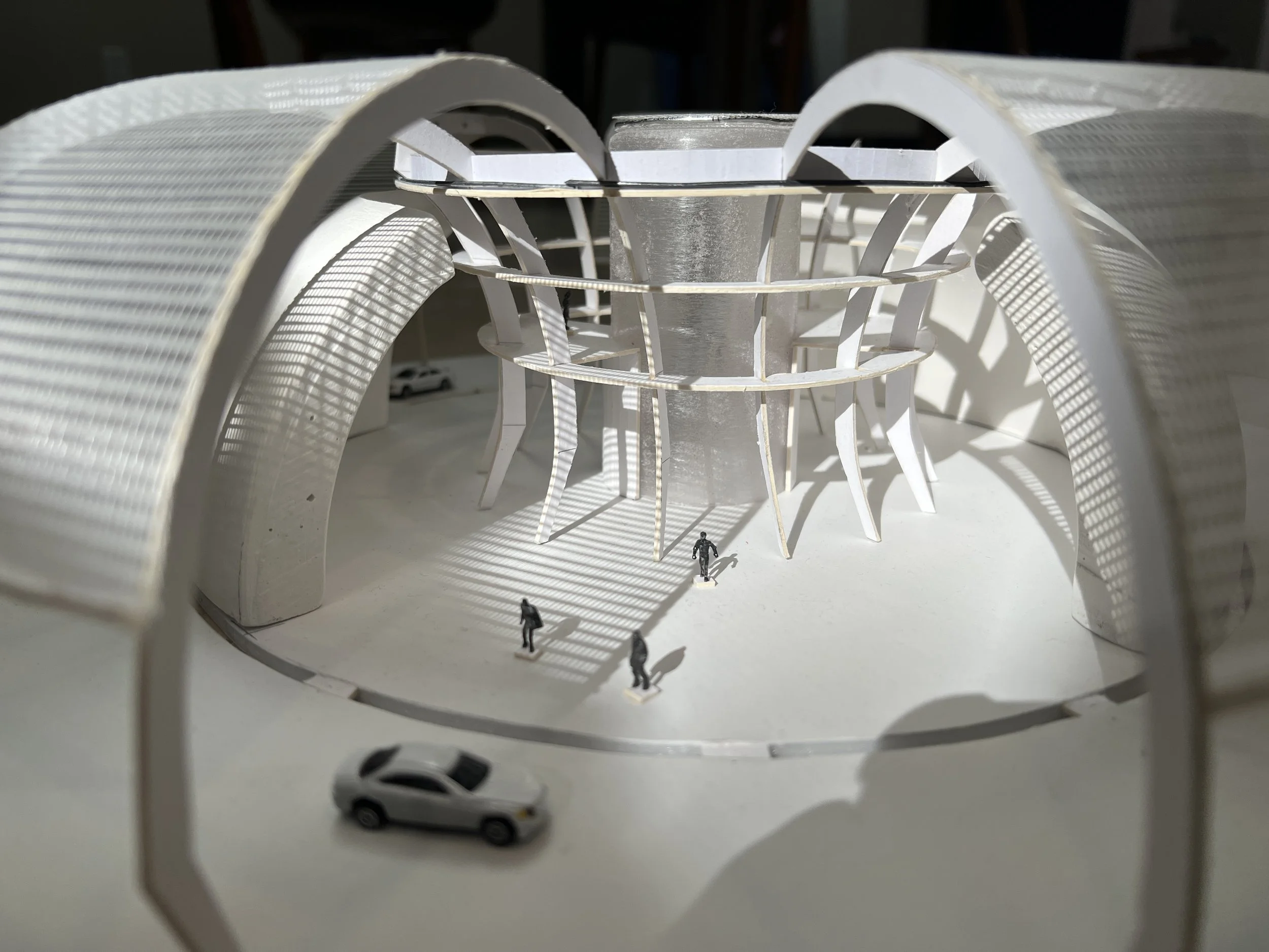 Cycle is a circular airport shelter and waiting station concept designed for autonomous car pickups. As urban centers and airports adapt to the rise of ride-sharing and autonomous vehicles, new infrastructure is needed to streamline traffic and improve the passenger experience. This project explores how cyclical flow and efficiency can be embedded into architectural design, creating a space that is both functional and adaptive to the evolving demands of modern transportation.