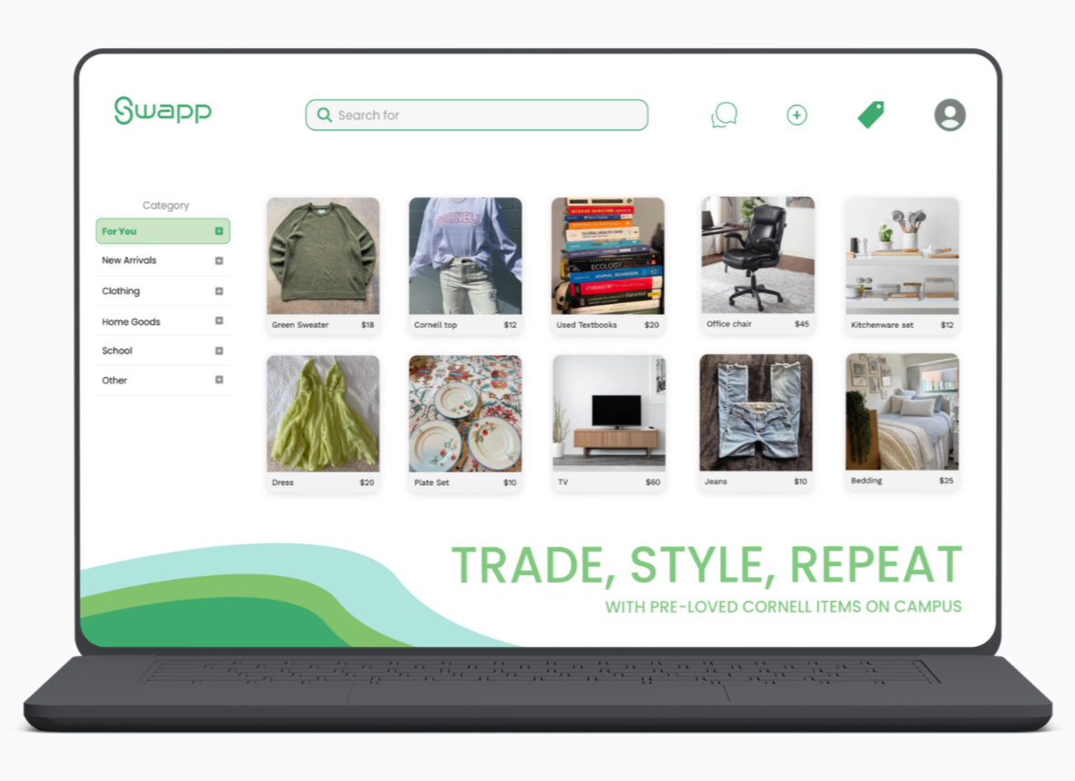 SWAPP is a campus-based resale platform designed to make sustainable exchange seamless for Cornell students. As move-outs generate significant waste each semester, the platform reimagines how pre-loved items can circulate within a closed campus community. This project explores how thoughtful UX design, trust-building systems, and streamlined workflows can reduce friction in peer-to-peer transactions, creating a marketplace that is both intuitive and aligned with circular economy principles.